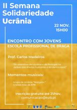 -Encontro com jovens das escolas de Braga na Palestra, Prof. Carlos Medeiros “Os caminhos da Ucrânia e de Portugal na defesa dos direitos humanos e da democracia”